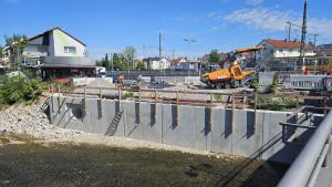 Hochwasserschutzmauer im Bereich der Brücke Bahnhofstraße fertiggestellt – Restarbeiten noch bis Anfang September 2025
