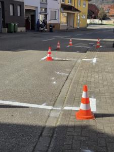 Am Donnerstag, den 5. März, wurden in der Hauptstraße in Söllingen Markierungsarbeiten für straßenbegleitende Parkflächen durchgeführt. Die Maßnahme steht im direkten Zusammenhang mit der zuvor vorgenommenen Änderung der Beschilderung. Durch die Neuordnung des öffentlichen Parkens verfolgt die Straßenverkehrsbehörde das Ziel, den Verkehrsfluss auf der Hauptstraße dauerhaft zu sichern. Die Einrichtung einer Parkverbotszone mit dem Zusatzzeichen „Parken nur in gekennzeichneten Flächen erlaubt“ ermöglicht das Parken im öffentlichen Raum, unter Beachtung des Begegnungsverkehrs und ausreichend dimensionierter Ausweichstellen.