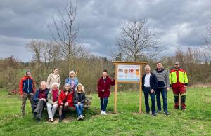 Zwei Bänke laden an der neuen Eichen-Allee zum Verweilen und zum Austausch ein. Die Allee soll, ebenso wie die Partnerschaften der Gemeinde Pfinztal, wachsen und sich weiterentwickeln.